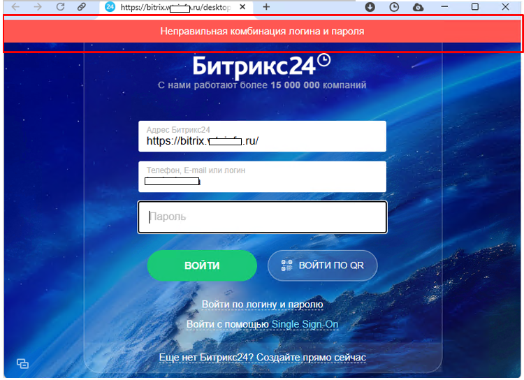 В итоге у вас открывается окно авторизации на наш портал «Битрикс 24» веб версия.