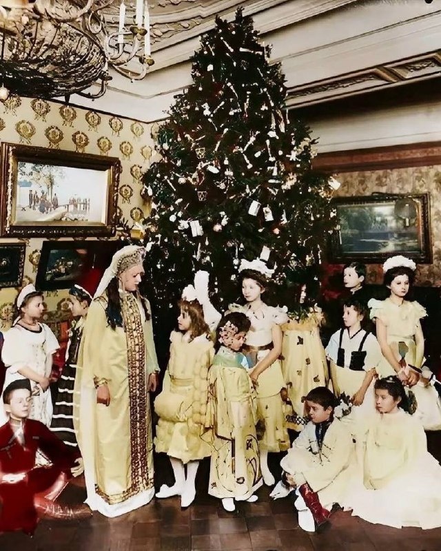 🌏🌍🌎 📙🎓😱🔮 🔜 Фотофакт. История о жизни глухих 📌 Группа учащихся Императорского училища глухонемых в карнавальных костюмах у Рождественской ёлки. 🗓 Январь 1907 года (декабрь 1906 г. по старому стилю). *Фото заменено на цветное с помощью ии. ‼️ Как вам такая история? Эти и другие новости - на @gluxixnet.