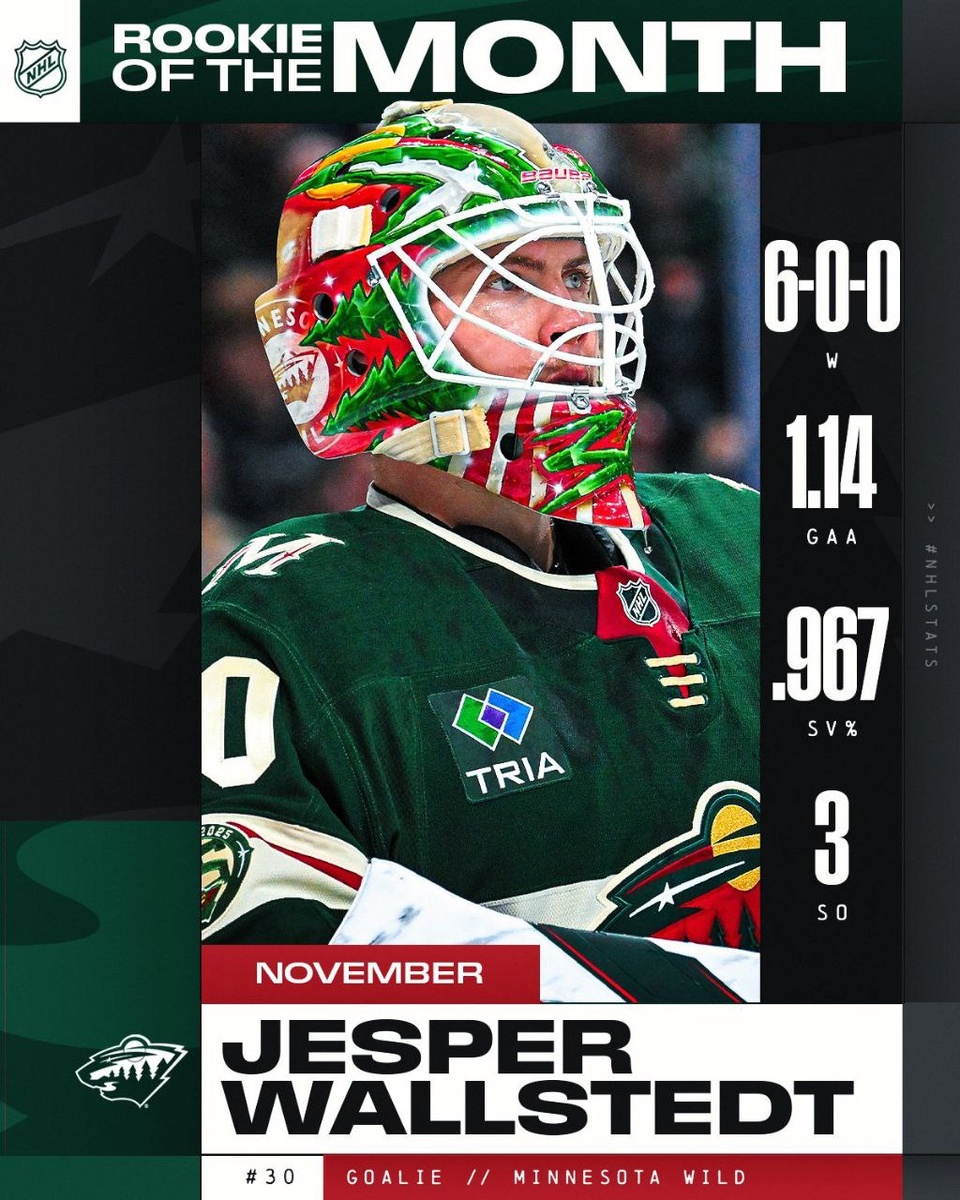 🌲 Йеспер Валльшедт вчера был назван лучшим новичком ноября, а сегодня одержал пятую "сухую" победу в 15 стартах в карьере Быстрее шведа только Фрэнк Браймсек добирался до 5 шатаутов со старта карьеры: в 1938 году ему понадобилось 9 игр. В текущем сезоне у Валльшедта 10 игр, 4 из которых завершились без пропущенных шайб. @pro_nhl_ru