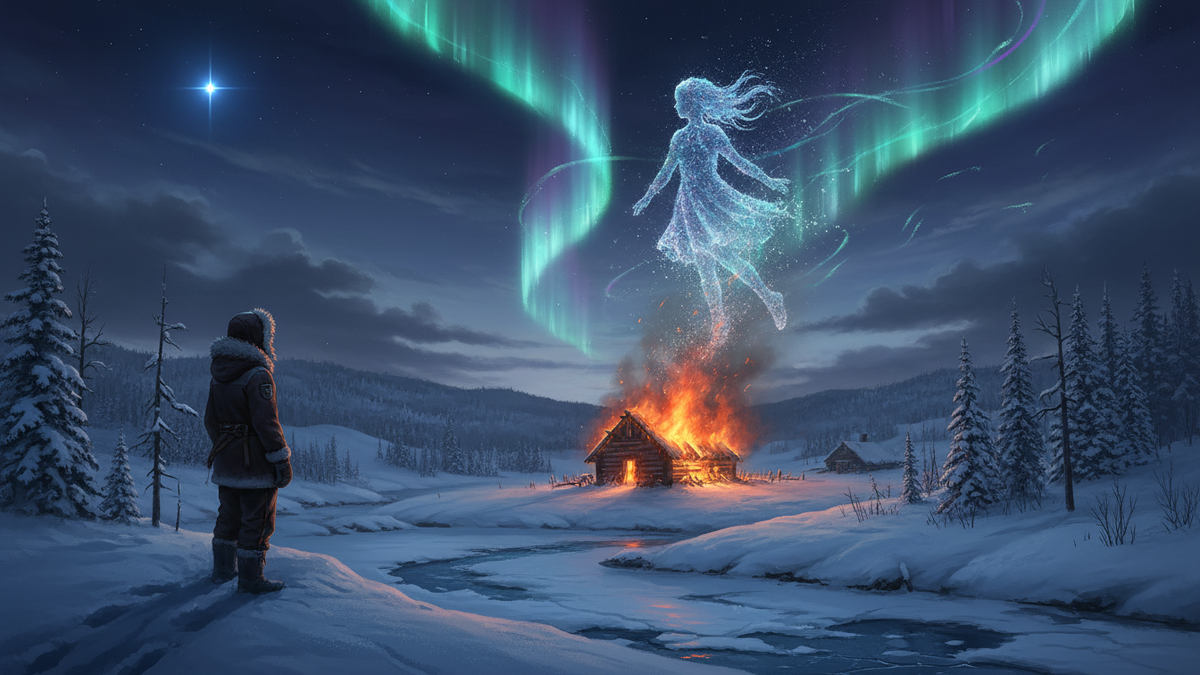 Дверь скрипнула. В избу вошла девушка в белом полушубке. Синие глаза, румяные от мороза щёки. «Здравствуйте», — хрипло поздоровался Иван. Она молча подошла к печи, подбросила дров, движения её были странно осторожными. Потом зачерпнула из котла тёмный отвар, пахнущий травами и смолой, и протянула кружку. В её глазах стояли слёзы — не от страха, а от глубокой, давней тоски.