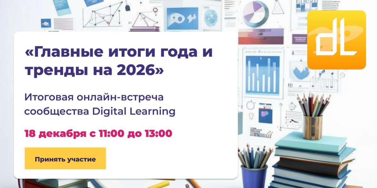 Друзья! 🚀 🏃♂️ Главное профессиональное сообщество про современное обучение подводит итоги года и смотрит в будущее: лучшие практики, ключевые тренды, вызовы, изменения, инструменты, находки. ✅ 18 декабря в 11:00 приглашаем вас на итоговую онлайн-встречу сообщества Digital Learning! Обсудим с лидерами отрасли главные итоги уходящего года и планы на 2026: - Что ИИ уже сделал со сферой обучения и что ещё сделает — главные итоги, выводы, тренды и антитренды 2025 года? - Главные драйверы развития сферы обучения в 2025? - Основные барьеры для сферы обучения? - Лучшие кейсы, инсайты и практики 2025? - Что показала Премия Digital Learning 2025? - Ключевые планы на 2026? - Главные тренды в обучении на 2026? На эти и другие вопросы ответят наши эксперты: - Оксана Фетисова, Заместитель вице-президента по персоналу и образовательным проектам VK (*) - Валерий Леонтьев, CEO Лабмедиа - Сергей Замараев, CEO Courseditor - Татьяна Галкина, Директор Академии iSpring - Павел Безяев, Лидер сообщес