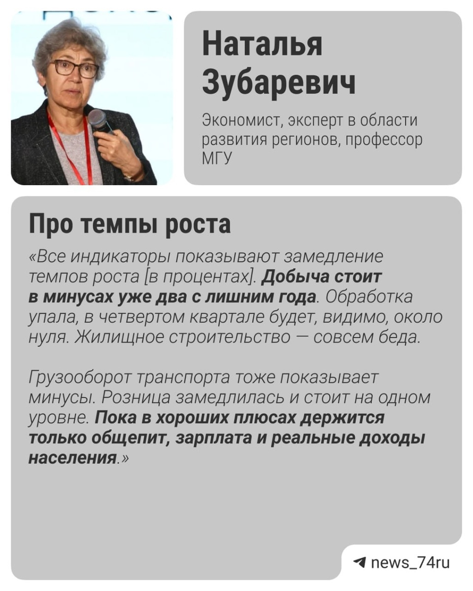 Экономист Наталья Зубаревич — о том, куда идут деньги в России Профессор МГУ Наталья Зубаревич выступила на международной конференции «Литейный консилиум», которая сейчас проходит в Челябинске. Эксперт заявляет, что Россия стремительно движется к следующему кризису, но кризис этот далеко не первый. Собрали самые яркие тезисы из выступления известного экономиста ⬆️