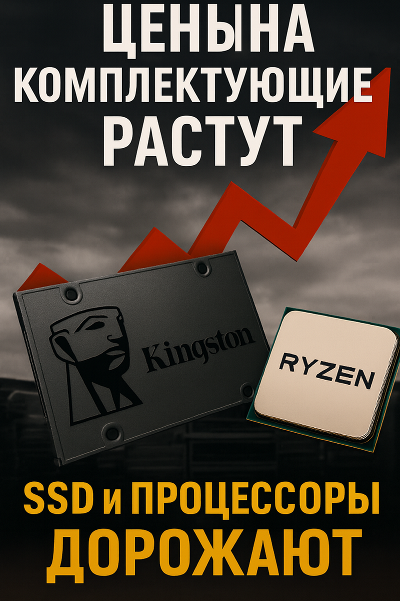 Рынок комплектующих переживает один из самых болезненных факторов за последние годы: резкий рост цен на процессоры и SSD. Повышение цен на комплектующие стало главной темой в IT-сообществе — и неудивительно. Если раньше собрать мощный ПК было вопросом выбора бюджета, то сегодня это всё чаще вопрос доступности. Стремительное подорожание уже заметно не только в профессиональном сегменте, но и для обычных пользователей, ищущих SSD 512, SSD M2, Intel SSD, SSD диск, SSD накопитель или процессоры AMD для своих сборок. Запросы вроде «ssd цена», «ssd 1TB», «ssd гб» и «процессор AMD цена» стали одними из самых популярных в поиске. Разберёмся, что происходит и как это повлияет на рынок ПК в 2025 году. 📈 Почему дорожают процессоры и комплектующие 1. Рост себестоимости и обновление линеек процессоров Производители процессоров, включая AMD, продолжают переход на новые техпроцессы, что увеличивает стоимость производства. Новые линеки требуют более дорогих материалов, высокой точности изготовлени