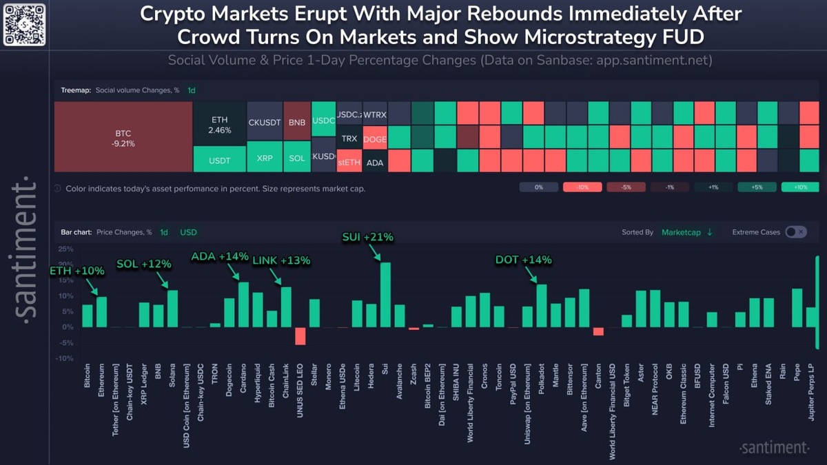 Santiment: топ альткоинов голубых фишек по отскоку вчера