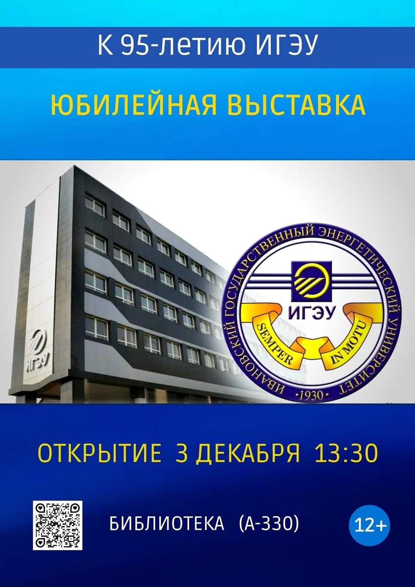 В ИГЭУ откроется выставка к 95-летию вуза 3 декабря в Ивановском государственном энергетическом университете им. В.И. Ленина откроется выставка, посвященная 95-летию вуза. В экспозиции расскажут событиях, традициях, достижениях университета, за которыми в первую очередь стоят люди. Вниманию посетителей представят исторические артефакты и подарки вузу и факультетам от выпускников и организаций. Разместится выставка в библиотеке. Открытие в 13:30. 12+