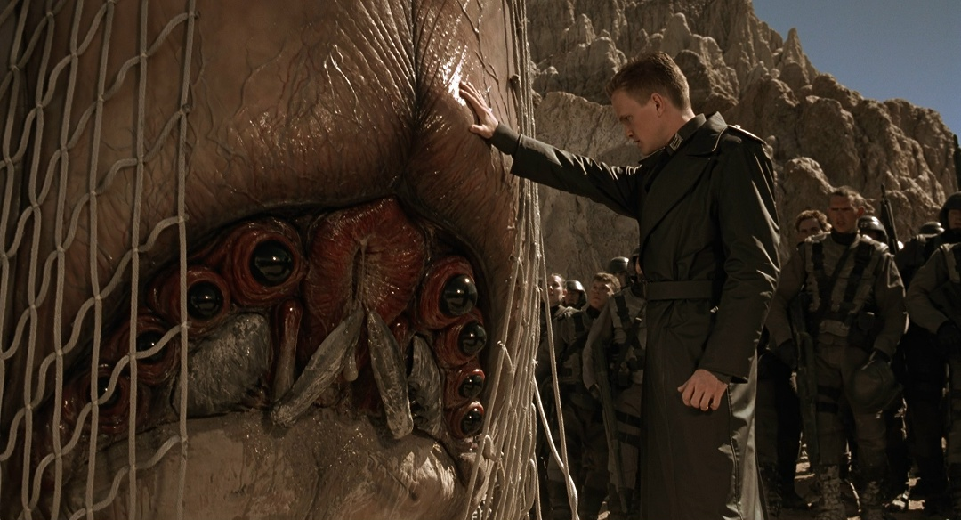 И да: разумеется, давно известна позиция самого Пола Верховена и сценариста Эда Ноймайера, в открытом доступе есть куча их заявлений и комментариев, но на них ссылаться неспортивно: во-первых, критики всё равно скажут, что это оправдания, а во-вторых, в нашу эпоху постмодерна каждый имеет право заявить, что автор мертв, и интерпретировать произведение, игнорируя внешние источники. Поэтому фиги в режиссёрском кармане и неочевидные идеи «Звездного десанта» 1997 года я буду рассматривать в основном изнутри самого фильма и его вселенной – их вывести за скобки дискуссии точно нельзя.