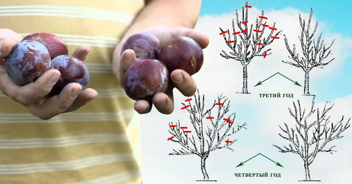 Слива и алыча. Эти культуры склонны к сильному загущению кроны, образованию множества острых развилок, где возможны разломы. Основная работа — прореживание. Вырезают все ветви, растущие внутрь кроны, перекрещивающиеся, трущиеся друг о друга. Оставляют хорошо расположенные скелетные ветви с широким углом отхождения. У стареющих деревьев сливы применяют сильное омолаживание на боковые ответвления, так как плодоношение у них, как и у вишни, сосредоточено на молодой древесине.