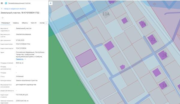 Название: Во исполнение Распоряжения МКУ Земельно-имущественная палата Елабужского муниципального района № 01-1454 от 06.08.2025 г. Лот № 6: Земельный участок площадью 600 кв.м., кад. № 16:47:010804:1732, расположенный по адресу: РТ, Елабужский муниципальный район, г.Елабуга, территория с/о «Гульбакча». Категория земель: Земли населенных пунктов. Разрешенное использование: «для ведения садоводства». Канал: Госземля Республика Татарстан Область: - Район: - Населенный пункт: - Локация: Смотреть на карте ВРИ: Ведение садоводства Кадастровый номер: 16:47:010804:1732 Кадастровая стоимость: - Вид сделки: Продажа Площадь: 600 м² Начальная цена: 2673000.00 руб. Дата завершения: 16.12.2025 Подробнее: ГИС ТОРГИ #госземля #земляотгосударства #земля #земельныйучасток #земельныеторги #торги #аукцион #продажаземли #продажа #республикататарстан