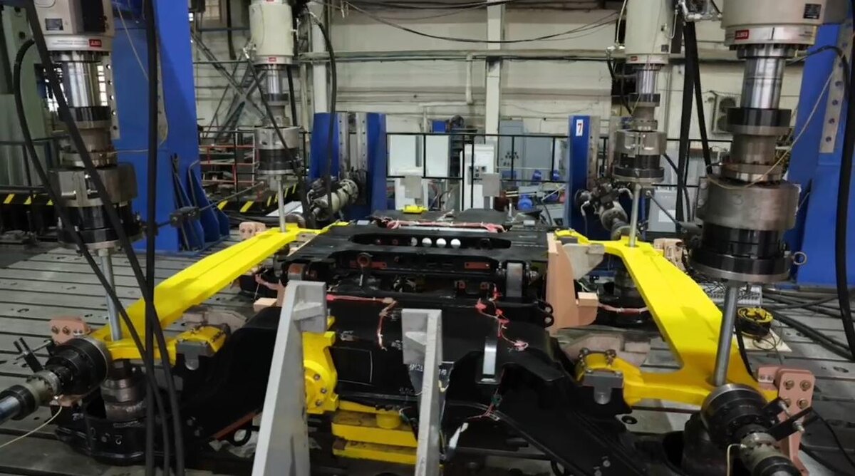 Опубликовано видео испытаний рамы моторной тележки для высокоскоростного поезда