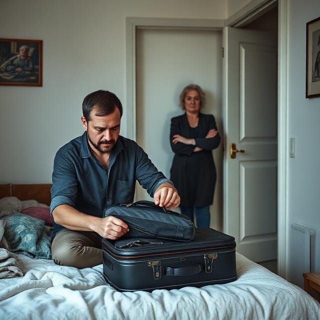 Лена стояла в коридоре, прислонившись к стене. Не плакала — просто смотрела. Он собрал почти всё: футболки, рубашки, пару штанов, зарядки, бритвенный станок. Его носки валялись в углу, но он даже на них не посмотрел. Ему хотелось закончить всю сцену как можно быстрее.
