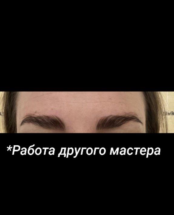Моя постоянная гостья регулярно делала долговременную укладку бровей, пока я не ушла в декрет. Потом она долго искала мастера, чтобы точно сделали красиво, но, к сожалению, не получилось.. На фото (с разрешения девушки) прикрепляю те брови, которые сделал ей другой мастер. Гостья написала о том, как сильно переживает, что проходила уже с такими бровями целый месяц, они никак не укладываются, не поддаются макияжу и доставляют неудобства, вместо облегчения жизни. Я на тот момент начала по-немногу работать, будучи еще в декрете, и записала девушку на исправление работы. Могу сказать, что она продержалась еще долго. Исходик - мы видим слегка рыжий оттенок волосков. В этих местах волос поврежденный, состав передержали, это видно. Сы видим уже немного отросшие брови после неудачной процедуры. Если к вам приходит клиент на исправление раньше, чем через месяц, его тоже нужно делать, но очень аккуратно. Когда состав уже передеожан - волос сухой, ломкий, есть опасность сделать еще хуже. Как