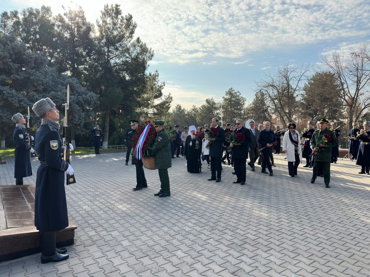 Денис Мантуров принял участие в церемонии возложения цветов к Вечному огню в мемориальном комплексе "Братские могилы" в Ташкенте