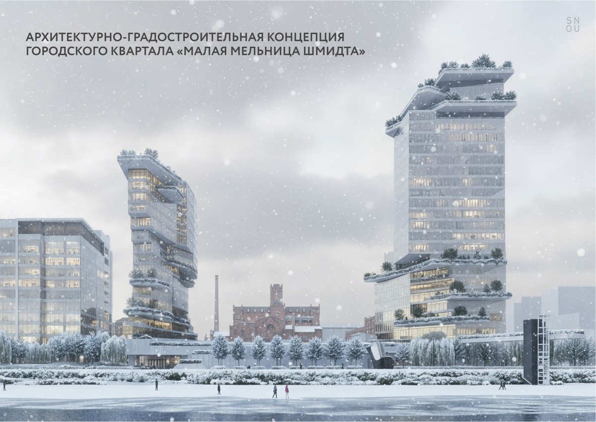 Визитная карточка архитектурного бюро Snou, которое стало победителем конкурса на лучшую концепцию развития территории малой мельницы