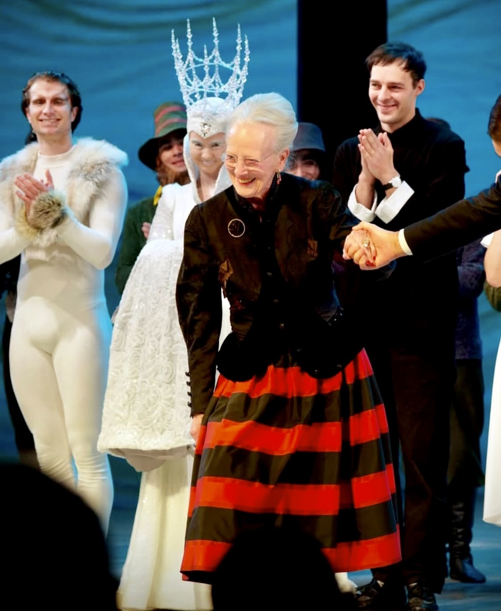 Королева Дании Маргрете Вторая побывала в парке Тиволи в Копенгагене по случаю премьеры балета «Снежная королева», сценаристом и художником по костюмам которого она является. Я уже рассказывала о том, что она оформляет спектакли и сказки, в том числе сказки Андерсена, который придумывал их когда-то для датского королевского двора. На вечере присутствовали ее сестра Бенедикта, ее старший внук, граф Николай Монпеза, которого она вместе с его семьей понизила из принцев, чтобы не было соперничества( а парень хорош!), и ее подруга королева Соня Норвежская. После премьеры выпили с балетной труппой чаю.