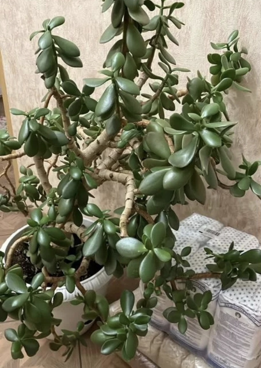Когда мне предложили забрать "эту огромную штуку, которая только место занимает", я не ожидала увидеть настоящую растительную драму. На фото стояла метровая крассула, которая жалобно склонилась набок под тяжестью собственных листьев. Двенадцать лет, и несколько из них точно без единой обрезки, превратили аккуратное денежное дерево в хаотичное нагромождение ветвей, борющихся за место под солнцем. Знаете, я верю, что растения действительно приносят больше денег в дом. Только когда они выглядят ухоженно , создают уют и прекрасный настрой, который помогает в карьерной среде чувствовать себя более спокойно и уверенно. Дополнительная внутренняя опора для внешних свершений😁. Забрала фикус и крассулу Глядя на то, что ко мне приехало, было трудно представить, что, кроме символичных двух тысяч, которых за неё заплатила, она что-то могла принести бывшим хозяевам. На фото не так видно, практически завалилась на одну сторону. Первым делом я взялась за диагностику проблем. Огромный 2