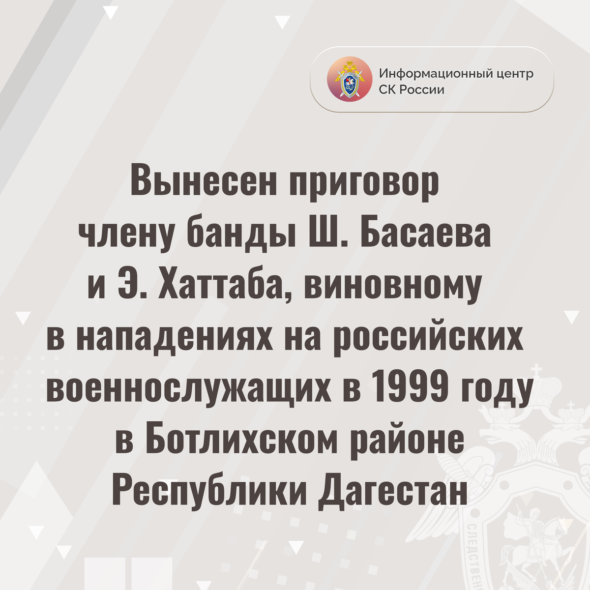 Вынесен приговор члену банды Ш. Басаева и Э. Хаттаба, виновному в нападениях на российских военнослужащих в 1999 году в Ботлихском районе