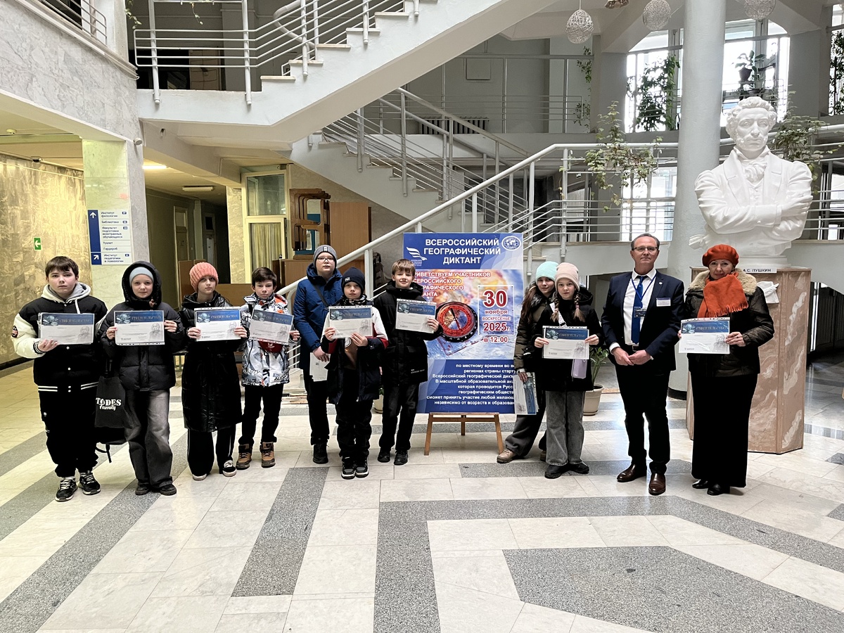 «Географический диктант» – ежегодная международная просветительская акция Русского географического общества. Первый диктант был проведён в 2015 году. За десять лет его участниками стали свыше 4 миллионов человек. За все годы проведения диктанта свои знания по географии, кроме россиян, смогли проверить участники из 137 стран мира. В одиннадцатый раз работала площадка диктанта и в Орловском государственном университете им. И.С. Тургенева. Организатором площадки традиционно выступила кафедра географии, экологии и общей биологии Института естественных наук и биотехнологии. Наша площадка самая большая в регионе. За одиннадцать лет проведения географического диктанта на ней зарегистрировано более 5 тысяч участников. 30 ноября 2025 года участие в акции приняли 300 человек: студенты, учащиеся техникумов и колледжей, учителя и школьники. В качестве почетного гостя географический диктант посетил Федеральный инспектор по Орловской области аппарата полномочного представителя Президента России в Ц