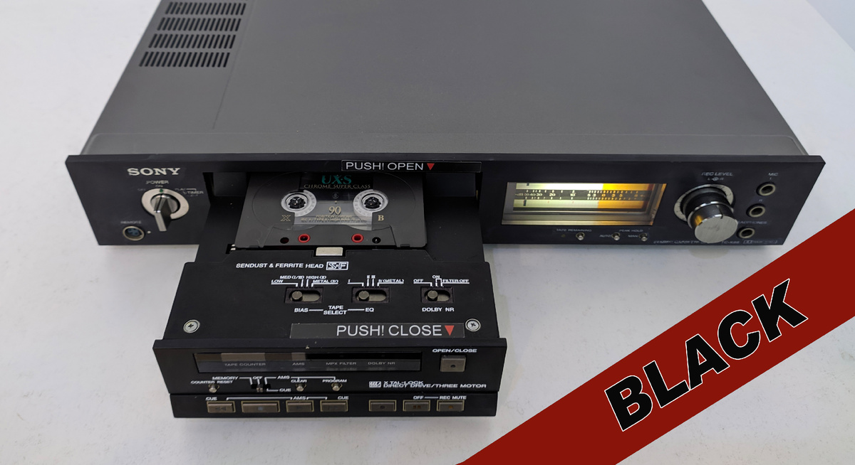 Сегодня премьера очень интересного проекта. В номенклатуре производителя эта кассетная дека никогда в черном цвете не производилась и в отличие от ранее представленного тюнинга PIONEER CT-920, работа над SONY TC-K88 оказалась значительно сложнее. Кроме фронтальной панели к анодированию пришлось подготовить еще ряд мелких деталей и пластин, что в технологическом плане оказалось трудоемкой и кропотливой работой. После химической обработки, по заранее подготовленным макетам специальным УФ принтером скрупулезно наносились надписи. Кроме графической работы по металлу, согласно образца производителя, были изготовлены две наклейки с надписями " PUSH OPEN" и "PUSH CLOSE". Поскольку задача ставилась не только "перекрасить" девайс в черный цвет, а добиться сочетания с другими компонентами серии ESPRIT, ради чего собственно и была затеяна эта "канитель", специалисты по электролизу целую неделю химичили с составом гальванического раствора и образцами, чтобы добиться желаемого результата.