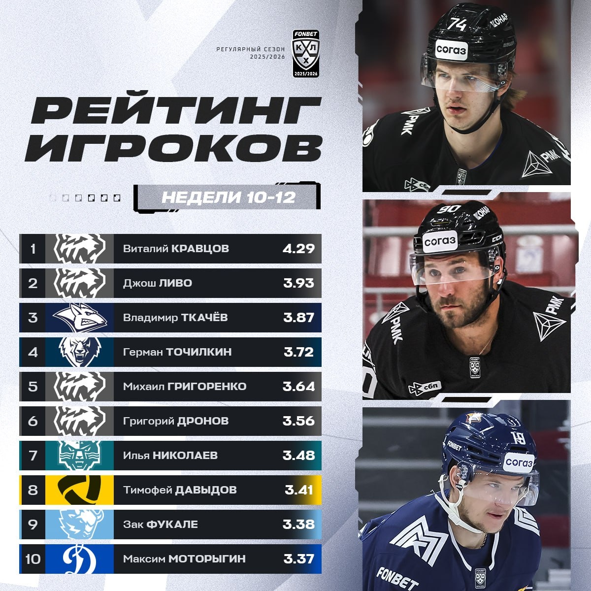 Виталий Кравцов и Джош Ливо забрались в тройку лидеров нового Рейтинга игроков.