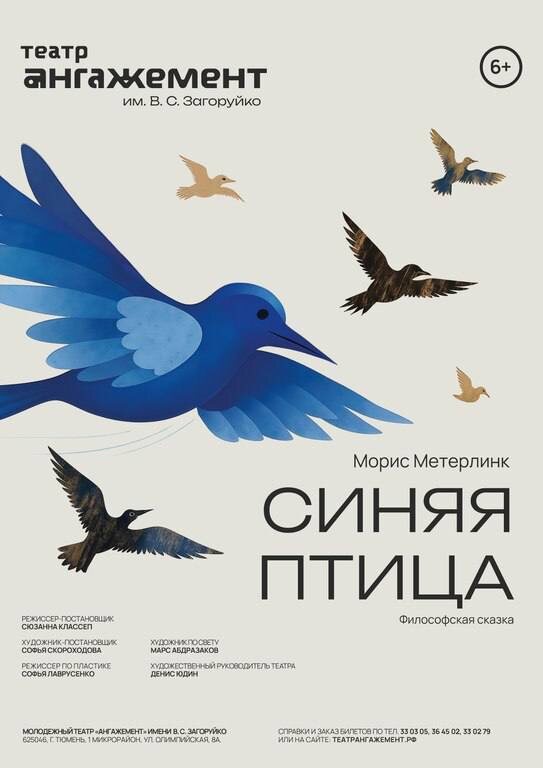Премьера для детей и их родителей в театре "Ангажемент"!🎄 🕊Синяя птица (6+) ⏳Когда: 12 декабря в 19:00, 13 декабря в 11:00 и в 14:00, 14 декабря в 11:00 и в 14:00 📌Стоимость: 700 - 1000 руб. 🔎Где:Молодёжный театр "Ангажемент" им. В. С. Загоруйко, ул. Олимпийская, 8А 🎟Билеты: https://театрангажемент.рф/performance/278/ Морис Метерлинк написал свою философскую сказку, как волшебную историю о путешествии детей в поисках Синей птицы. Что это за птица такая и где ее искать? С тех пор эта пьеса полюбилась зрителям во многих странах, потому что в ней есть и сказка, и тайна, и ощущение светлого чуда. Герои отправляются в путь, чтобы найти птицу, которая приносит радость, и встречают на этом пути разные испытания, открытия и откровения. Наш спектакль рождается из этого сюжета, но обращается не только к детям, а к каждому зрителю. В пространстве театра путь Тильтиля и Митиль становится внутренним странствием, где простые шаги ведут к открытию глубинных смыслов. Они заходят в Царство Пам