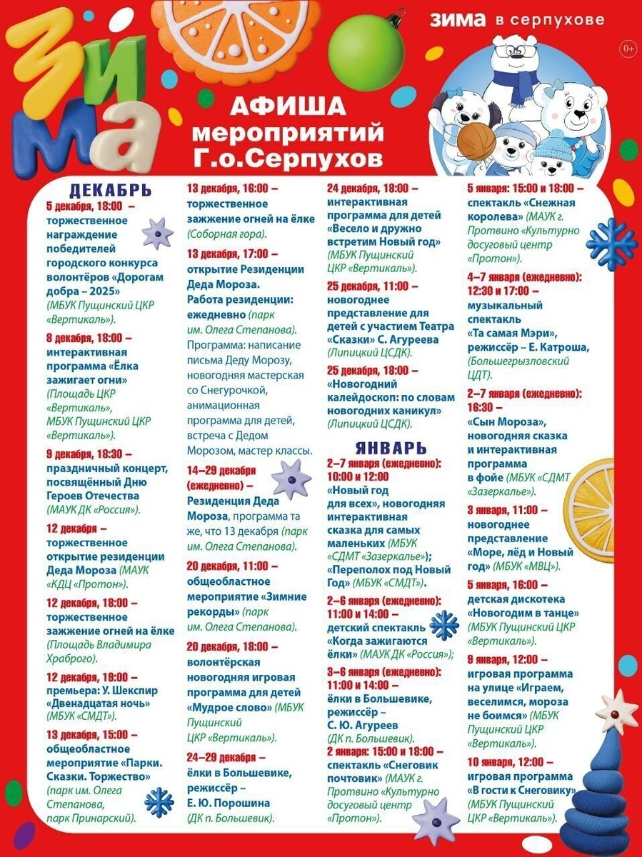 Стала известна программа новогодних и рождественских мероприятий в г.о.Серпухов⬇️