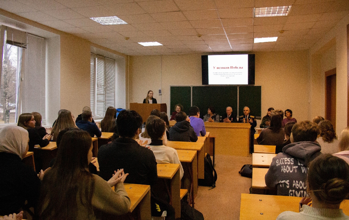 В понедельник, 1 декабря, на историко-филологическом факультете Педагогического института имени В. Г. Белинского Пензенского госуниверситета студенты встретились с автором книги «У Истоков Победы», заместителем председателя комиссии по патриотическому воспитанию Пензенского областного Совета ветеранов, почетным гражданином Пензы, краеведом Геннадием Тамбовцевым. Встреча прошла в рамках мероприятия «Пенза в военной шинели». С приветственным словом выступила Екатерина Вдовина, заместитель председателя Пензенского областного Совета ветеранов, председатель комиссии по патриотическому воспитанию. Краевед Геннадий Тамбовцев в своем выступлении рассказал о своей книге: о формировании и деятельности 61-й стрелковой дивизии в годы Великой Отечественной войны. Подробно автор остановился на рассказе об отдельных участниках дивизии, чтобы показать насколько мужественны были люди, и насколько трагично сложились их судьбы. Члены комиссии по патриотическому воспитанию Пензенского областного Совета