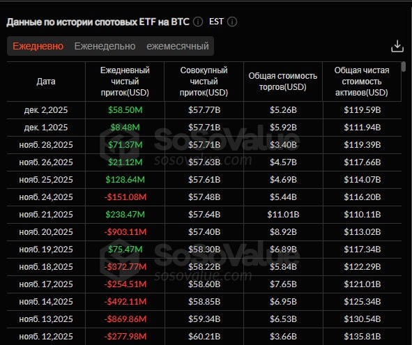 πΈ2 Π΄Π΅ΠΊΠ°Π±ΡΡ ΡΠΏΠΎΡΠΎΠ²ΡΠ΅ Π±ΠΈΡΠΊΠΎΠΈΠ½-ETF Π·Π°ΡΠΈΠΊΡΠΈΡΠΎΠ²Π°Π»ΠΈ ΠΎΠ±ΡΠΈΠΉ ΡΠΈΡΡΡΠΉ ΠΏΡΠΈΡΠΎΠΊ Π² ΡΠ°Π·ΠΌΠ΅ΡΠ΅ $58,5 ΠΌΠ»Π½, ΡΡΠΎ ΡΡΠ°Π»ΠΎ ΠΏΡΡΡΠΌ ΠΏΠΎΠ΄ΡΡΠ΄ Π΄Π½Π΅ΠΌ ΡΠΈΡΡΠΎΠ³ΠΎ ΠΏΡΠΈΡΠΎΠΊΠ°. Π‘ΠΏΠΎΡΠΎΠ²ΡΠ΅ ΡΡΠΈΡΠΈΡΠΌ-ETF Π·Π°ΡΠΈΠΊΡΠΈΡΠΎΠ²Π°Π»ΠΈ ΠΎΠ±ΡΠΈΠΉ ΡΠΈΡΡΡΠΉ ΠΎΡΡΠΎΠΊ Π² ΡΠ°Π·ΠΌΠ΅ΡΠ΅ $9,9 ΠΌΠ»Π½. Π‘ΠΏΠΎΡΠΎΠ²ΡΠ΅ ETF Π½Π° Solana Π·Π°ΡΠΈΠΊΡΠΈΡΠΎΠ²Π°Π»ΠΈ ΠΎΠ±ΡΠΈΠΉ ΡΠΈΡΡΡΠΉ ΠΏΡΠΈΡΠΎΠΊ Π² ΡΠ°Π·ΠΌΠ΅ΡΠ΅ $45,8 ΠΌΠ»Π½. XRP-ETF ΠΏΠΎΠ»ΡΡΠΈΠ»ΠΈ ΠΏΡΠΈΡΠΎΠΊ Π² ΡΠ°Π·ΠΌΠ΅ΡΠ΅ $67,74 ΠΌΠ»Π½