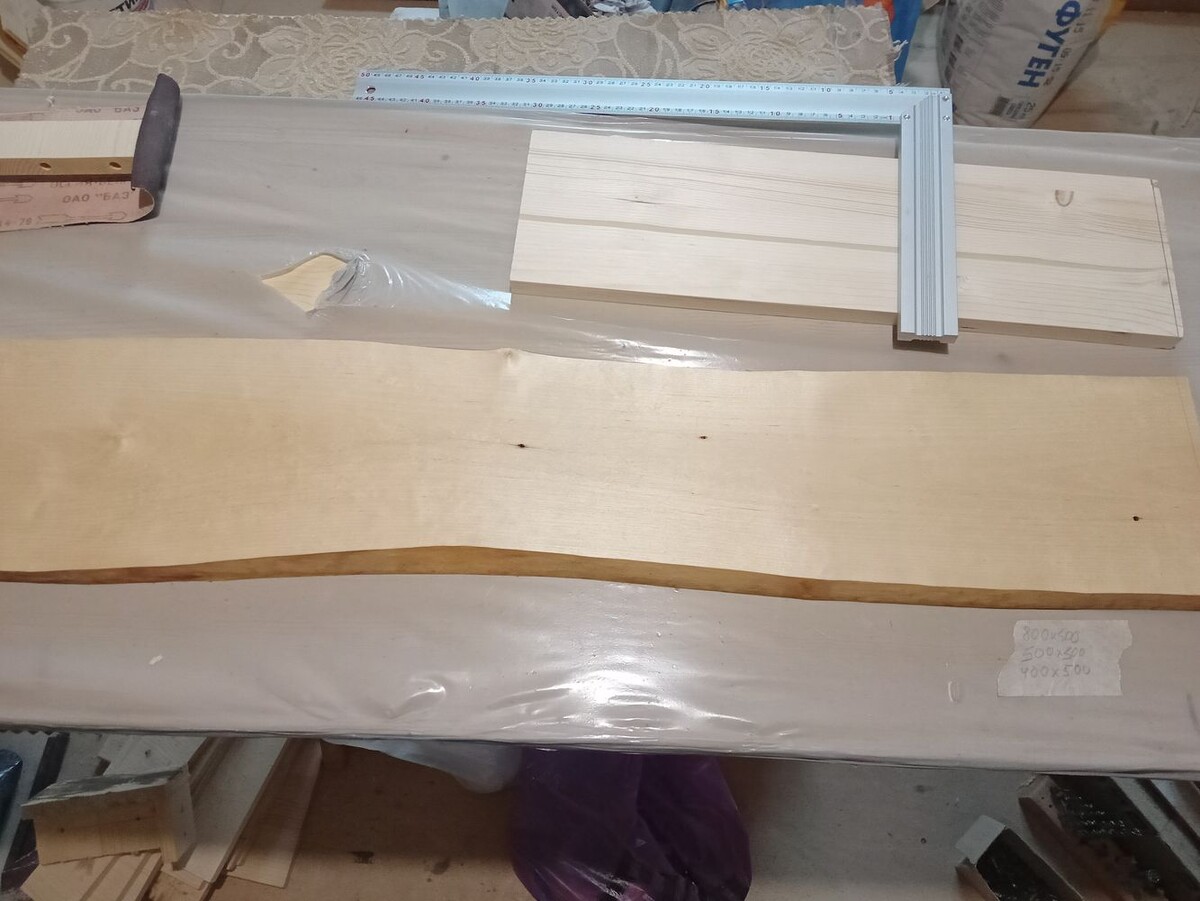 Старую доску прострогал на рейсмусе. Наверное надо было ещё пройтись по ней щёткой а то слишком гладкой и новой получилась. Или просто не строгать а пройтись шлифмашинкой.