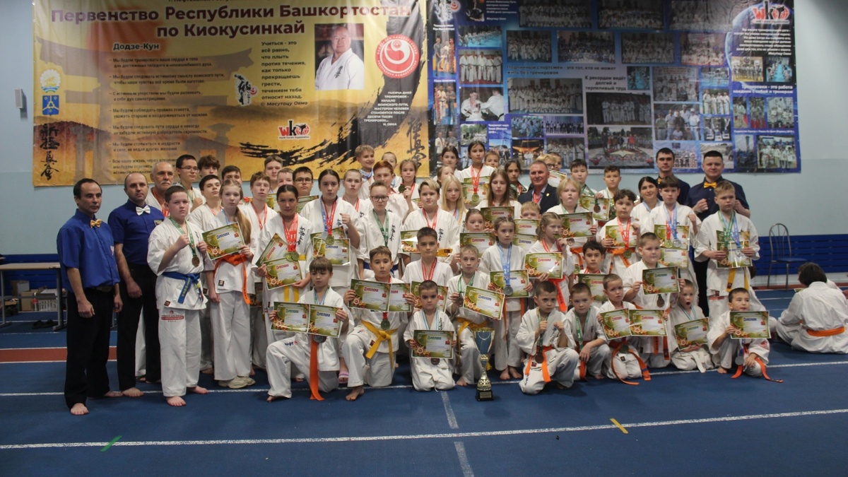 В Нефтекамске состоялось яркое спортивное событие - Первенство Республики Башкортостан по Киокусинкай посвященное 80 летию Победы в Великой Отечественной войне среди мальчиков и девочек 8-9 лет, юношей и девушек 10-11, 12-13, 14-15 лет, юниоров и юниорок 16-17 лет. Автор: Д.Рагозин Команда г. Нефтекамск стала первой в командном зачете под руководством тренера и руководителя Спортивной Федерации Киокусинкай Адылшина А.В. Соревнования проводились в соответствии с календарным планом Минспорта РБ – в нашем городе, где направление карате Киокусинкай активно развивается, Первенство организуется ежегодно и традиционно собирает много участников. В этом году в Первенстве участвовали более двухсот спортсменов из Уфы, Нефтекамска, Салавата, Агидели и Нуримановского района . В ходе соревнований лучших, сильнейших выявляли среди мальчиков и девочек 8-9 лет, юношей и девушек 10-11, 12-13, 14-15 лет, юниоров и юниорок 16-17 лет в разделах «кумитэ», «ката» и «ката-группа». Также проходил конкурс пока