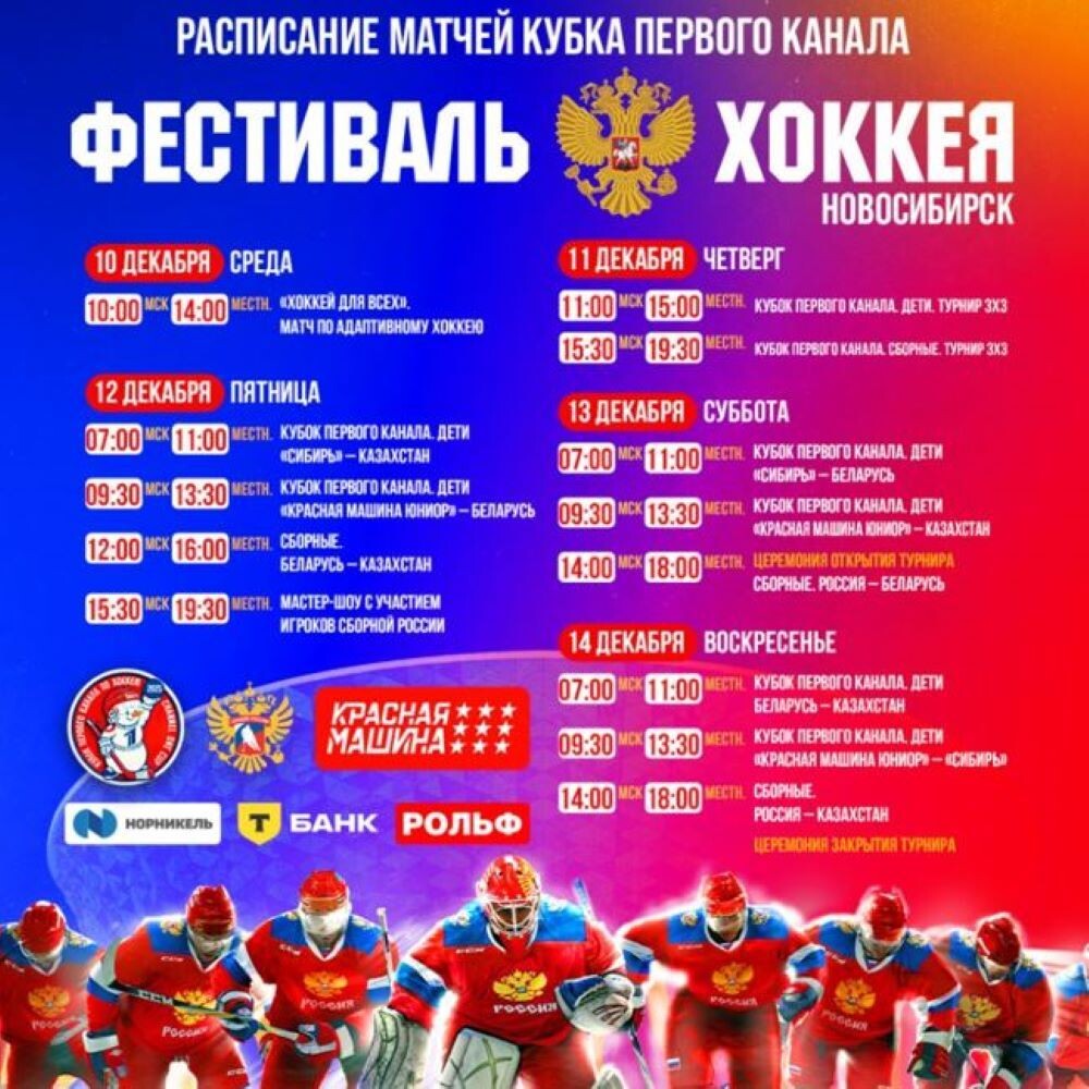 С 9 по 14 декабря Новосибирская область принимает Кубок первого канала по хоккею. В этом году турнир превратился в Фестиваль хоккея, который объединит сразу несколько соревнований. Главная команда страны сыграет матчи со сборными Беларуси и Казахстана, дополнительной частью программы станет турнир по хоккею 3х3 – динамичный формат, который привлекает болельщиков зрелищностью и высоким темпом игры. Впервые параллельно с основным турниром пройдет детский турнир. Одним из ярких событий станет мастер-шоу с участием игроков сборной России. Гости фестиваля увидят нестандартные упражнения, элементы индивидуальной техники и смогут оценить мастерство хоккеистов под новым углом. Также в программе выставочный матч по адаптивному хоккею «Хоккей для всех». В рамках фестиваля для зрителей будут организованы различные локации и конкурсы. Один из них – конкурс детского рисунка – уже стартовал. Участие в нем могут принять юные болельщики от 4 до 14 лет, им необходимо подготовить рисунок на хоккейную те
