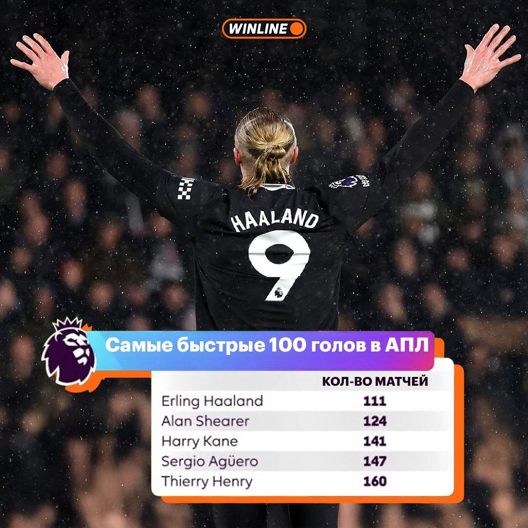 🏴🏴 Холанд забил 1️⃣0️⃣0️⃣ голов за 111 матчей в АПЛ! Фулхэм помог установить норвежцу новый рекорд — он достиг соточки быстрее всех в истории английского чемпа. Эрлинг также первым пробил отметку в 20 голов (14 матчей), 30 голов (27 матчей), 40 голов (39 матчей) и 50 голов (48 матчей). Позади Хохланда в топе — Ширер, Кейн, Агуэро и Анри.