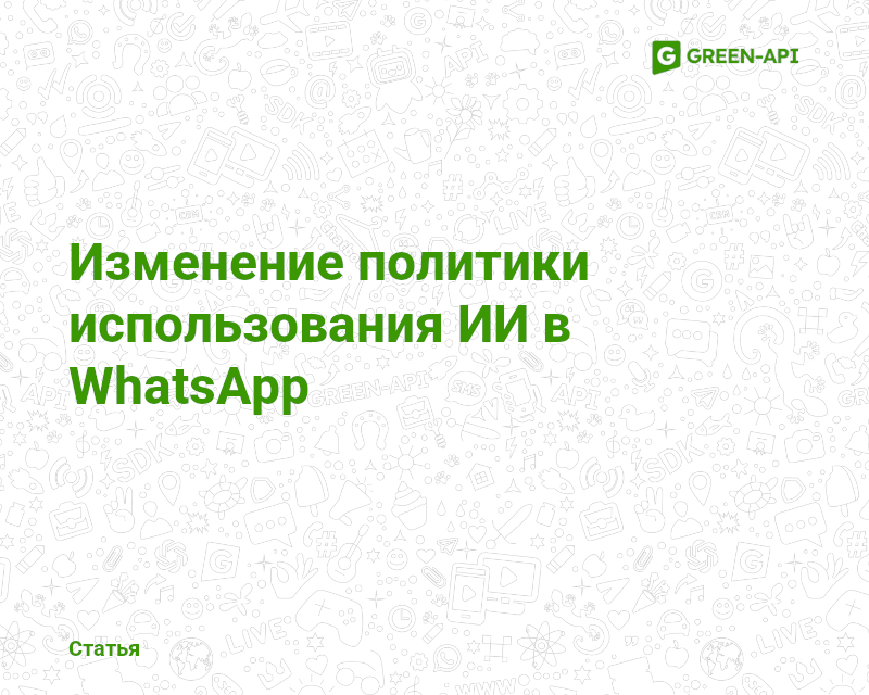 WhatsApp, эволюционировав из личного мессенджера в ключевой бизнес-инструмент, активно использует ИИ для клиентской поддержки и автоматизации. Однако, в начале 2026 года мессенджер вводит ограничения на применение чатботов через WhatsApp Business API (WABA), что затронет те бизнесы, использующие чат-ботов на базе универсальных языковых моделей LLM. Содержание Что случилось Причины изменений Что теперь делать Заключение Что случилось В сентябре 2025 года, WhatsApp обновила собственные правила WhatsApp Business Terms, согласно которым отныне запрещается использование платформы для универсальных ИИ-ассистентов. Начиная с 15 января 2026 года компаниям необходимо соблюдать требования, а именно ограничить использование ИИ в широких сценариях, например, в запросах на каждый день по типу «погода на сегодня», передачу данных для обучения сторонних ИИ-моделей и в целом, использовать искусственный интеллект только для конкретных задач, как отслеживание заказов или регистрация запросов. WhatsApp