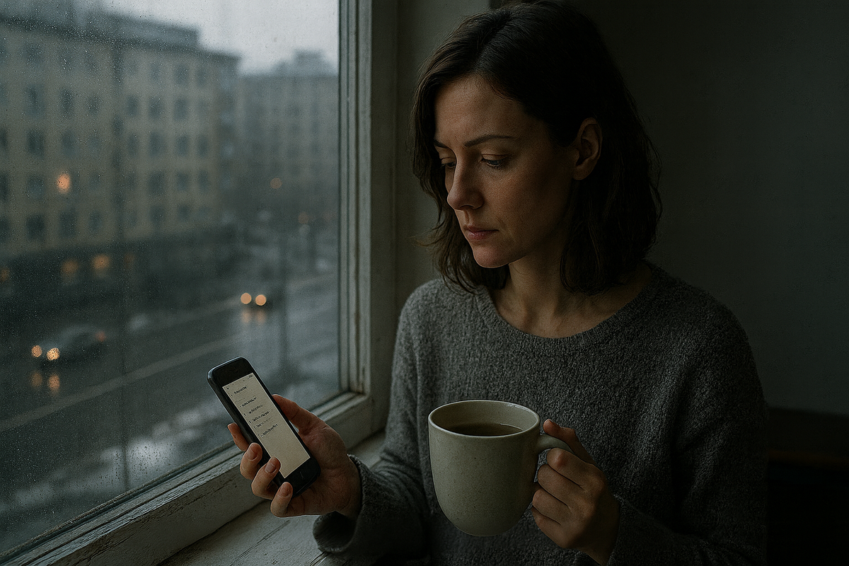 Анна стояла у окна с кружкой чая и смотрела, как редкие машины разрезают влажный снег на дороге. В руке — телефон, в телефоне — список напоминаний: «Купить хлеб», «Позвонить маме», «Дописать пост для блога», «Подумать над новой рубрикой». На последнем она каждый раз чуть дольше задерживала взгляд и… откладывала.