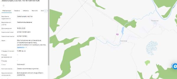 Название: Лот №3 - по продаже земельного участка из категории земель населенных пунктов с кадастровым номером 40:16:130100:426, вид разрешенного использования: для ведения личного подсобного хозяйства, площадью 1296 кв.м, адрес в соответствии с ФИАС: местоположение установлено относительно ориентира, расположенного в границах участка. Почтовый адрес ориентира: Калужская область, Мосальский район, д. Путогино. Канал: Госземля Калужская область Область: - Район: - Населенный пункт: - Локация: Смотреть на карте ВРИ: Для ведения личного подсобного хозяйства (приусадебный земельный участок) Кадастровый номер: 40:16:130100:426 Кадастровая стоимость: - Вид сделки: Продажа Площадь: 1296 м² Начальная цена: 176954.00 руб. Дата завершения: 21.01.2026 Подробнее: ГИС ТОРГИ #госземля #земляотгосударства #земля #земельныйучасток #земельныеторги #торги #аукцион #продажаземли #продажа #калужскаяобласть