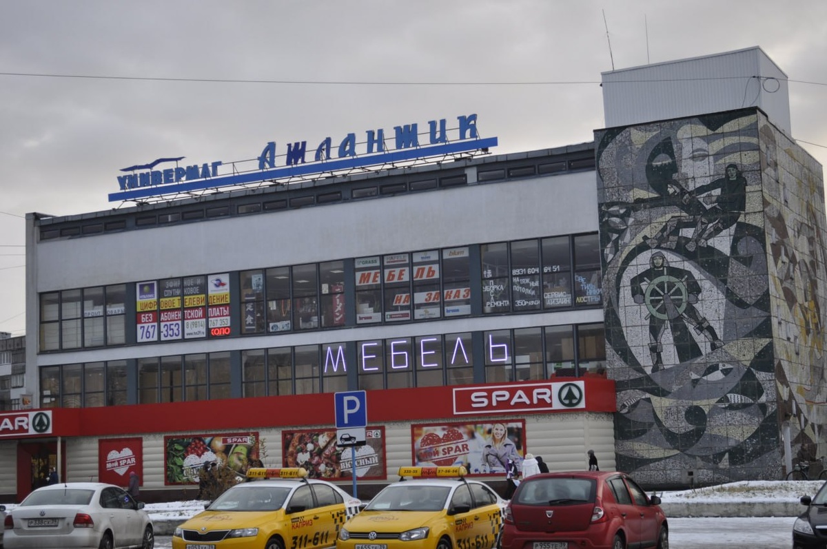 Мозаичное панно, посвященное калининградским рыбакам, на здании универмага «Атлантик».Панно создали художники Смирнягины Юрий Иванович и