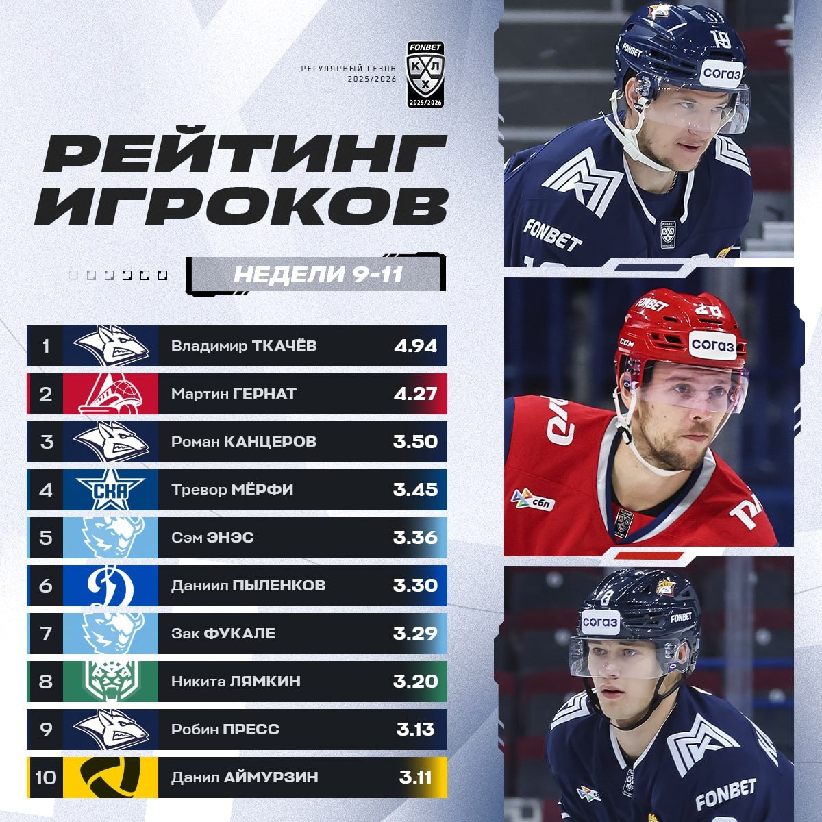 Новый Рейтинг игроков, прежнее трио лидеров — Ткачёв, Гернат, Канцеров.