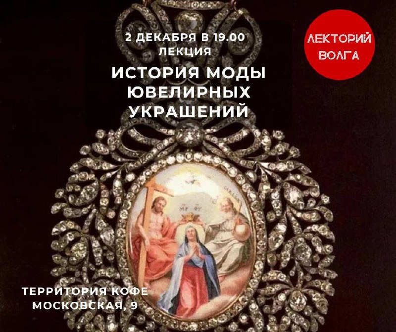Лекторий «Волга» приглашает 2 декабря в 19.00 на лекцию «ИСТОРИЯ МОДЫ ЮВЕЛИРНЫХ УКРАШЕНИЙ И БИЖУТЕРИИ 18-19 века» Вы узнаете: - как зависела мода на украшения от политической ситуации; - что из драгоценностей было прилично носить и женщинам, и мужчинам; - без чего нельзя появиться в Опере; - что винегрет - это не только салат из свеклы и капусты; - когда железные украшения могут быть дороже, чем золотые. Спикер: Ирина Ремпен, руководитель Саратовской студии старинных танцев "Chiara Stella", доцент СГУ, специалист по истории костюма. Билеты 300-500₽ Билеты по ссылке 🔗 https://lektorvolga.qtickets.ru Расписание лектория - https://dzen.ru/media/lektorvolga/raspisanie-lektoriia-volga-na-dekabrianvar-6923f68b0707b3544815065f Место проведения - кафе «Территория кофе» на Московской, 9 Лекторий «Волга» @lektorvolga