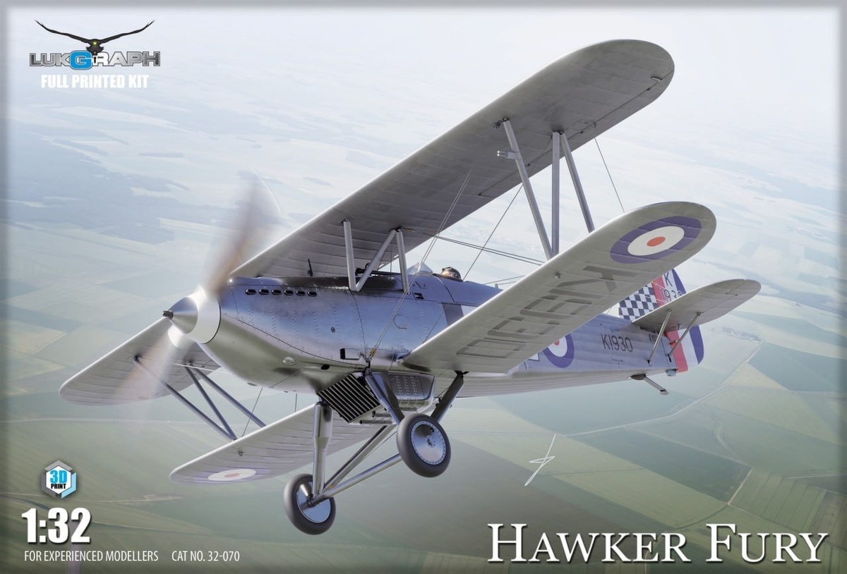 LukGraph из Польши показала коробки своих новых выпускаемых на 3D-принтере моделей Hawker Fury в масштабе 1/32: Hawker Fury (каталожный номер 32-070) Hawker Fury Spanish service (32-071)