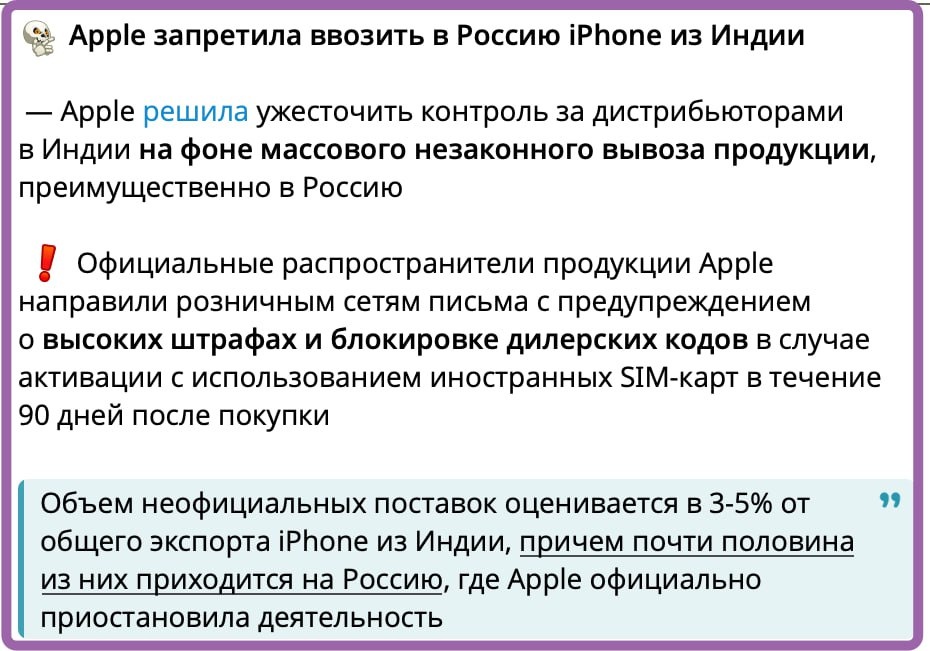 А вы знали, что весь серый импорт Apple iPhone практически из Индии сейчас? :) последний раз телефон именно оттуда был, с экономией 35к
