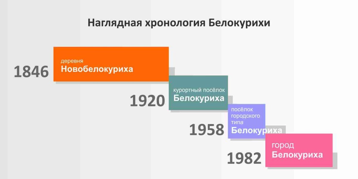 В следующем году Белокуриха войдёт в юбилейный год – будем вспоминать, с чего начиналось наше поселение и какой путь оно прошли за 180 лет. На этой наглядной схеме видно, как менялся статус Белокурихи: • от деревни Новобелокуриха (Ново-Белокуриха) — • к курортному посёлку, • затем посёлку городского типа • и, наконец, к статусу города Белокуриха. За каждым таким «шагом» — развитие курорта, появление санаториев, инфраструктуры и людей, которые поверили в будущее этого места. #Белокуриха #История #Город