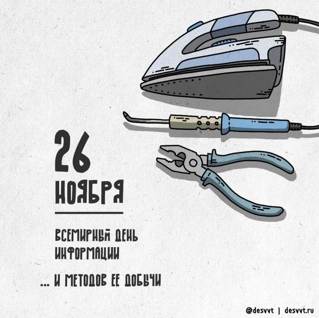 Всемирный день информации! 📡 26 ноября — день, когда можно с чистой совестью оправдывать часы, потраченные на просмотр мемов и чтение новостей: «Я не бездельничаю, я отмечаю праздник!». Историческая справка для особо любознательных: праздник учредили в 1994 году, чтобы человечество не забывало — информация бывает не только полезной, но и очень, очень смешной. P.S. Если честно, я бы эту дату и не заметил 🤫, но мне попалась настолько шикарная картинка-поздравление, что не поделиться было просто невозможно! p.s.s. Бывшие коллеги 🙂 Вас особенно крепко поздравляю!) #ВсемирныйДеньИнформации #Праздник #Информация #Юмор #Мемы