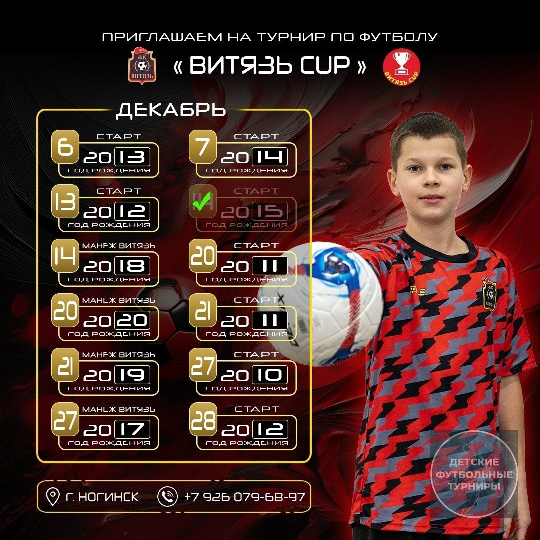 Приглашаем принять участие в серии турниров «Витязь CUP» в городе Ногинск с 6 декабря по 28 декабря -— #ФутбольныйТурнирДекабрь2025 #ФутбольныйТурнирМосковскаяОбласть2025 #ФутбольныйТурнирНогинск2025 #ФутбольныйТурнирМосковскаяОбласть2010гр #ФутбольныйТурнирМосковскаяОбласть2011гр #ФутбольныйТурнирМосковскаяОбласть2012гр #ФутбольныйТурнирМосковскаяОбласть2013гр #ФутбольныйТурнирМосковскаяОбласть2014гр #ФутбольныйТурнирМосковскаяОбласть2016гр #ФутбольныйТурнирМосковскаяОбласть2017гр #ФутбольныйТурнирМосковскаяОбласть2018гр #ФутбольныйТурнирМосковскаяОбласть2019гр #ФутбольныйТурнирМосковскаяОбласть2020гр Источник: https://vk.com/wall-178222694_2368