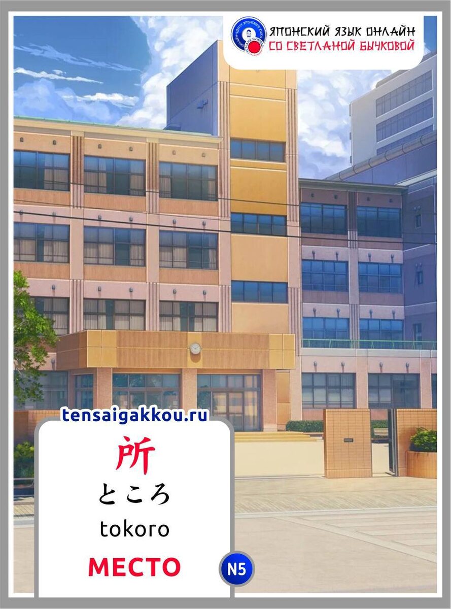所 ところ tokoro место この所はとても静かです。 Kono tokoro wa totemo shizuka desu. Это место очень тихое. その所で待っていてください。 Sono tokoro de matte ite kudasai. Пожалуйста, подождите на том месте. 新しい仕事の所はどこですか。 Atarashii shigoto no tokoro wa doko desu ka? Где находится новое место работы? この公園は遊ぶのにいい所です。 Kono kouen wa asobu no ni ii tokoro desu. Этот парк — хорошее место для игр. 🎧 Слушайте эти предложения на японском языке ниже 👇 Для практики составляйте свои примеры предложений на японском языке и пишите их в комментариях для проверки👌