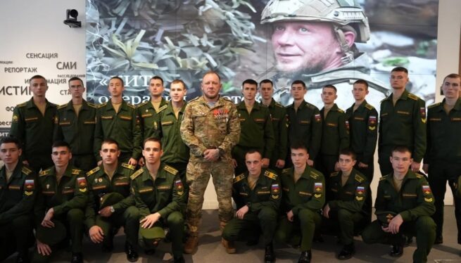 Олег Суворов встретился с журналистами, курсантами и студентами в Домжуре. Участникам мероприятия показали фрагменты фильма военного корреспондента Александра Сладкова «Фронт под линией фронта», а также представили фотовыставку, подготовленную журналистами из Курской области. Кит комментировал происходящее на экране и отвечал на вопросы, раскрывая детали уникальной боевой работы, о которой долгое время почти никто не знал.