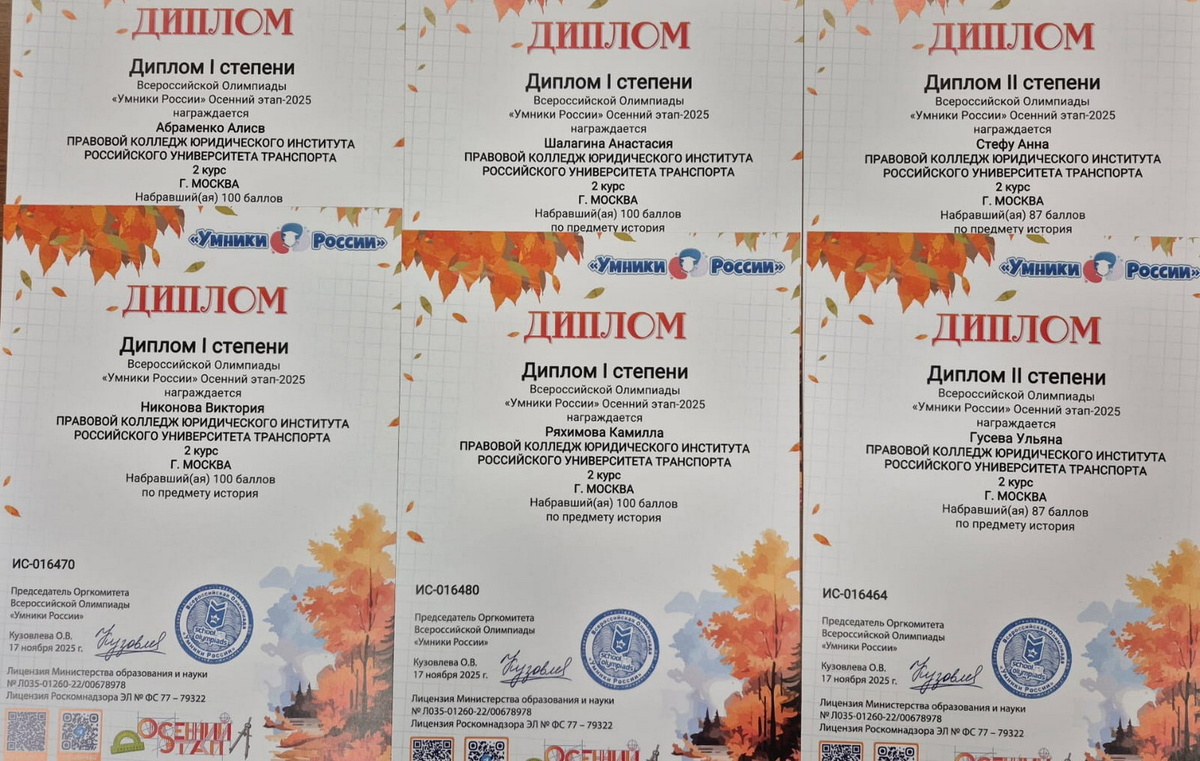 Студенты II курса специальности «Юриспруденция. Юрист в сфере судебного администрирования» Правового колледжа Юридического института РУТ (МИИТ) приняли участие в осеннем этапе Всероссийской олимпиады «Умники России» по дисциплине «История». Участие студентов в олимпиаде по истории позволяет привлечь молодое