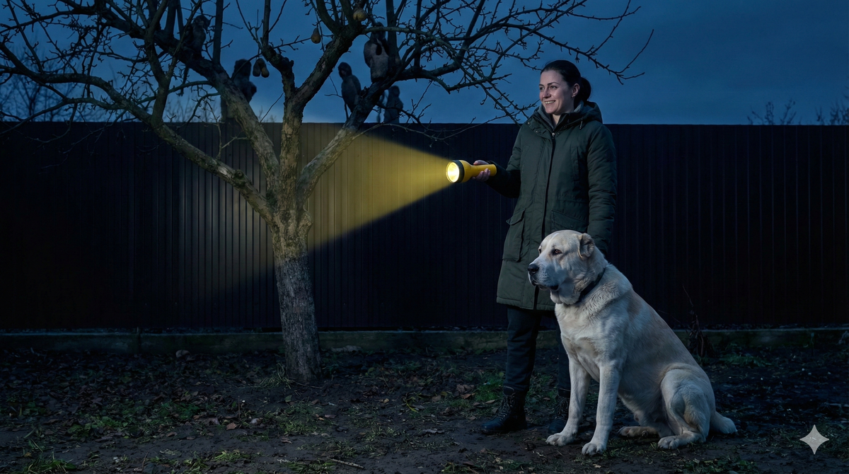Пёс встал и рявкнул так, что с груши посыпались последние сухие листья. Тетя Люда вцепилась в ствол мёртвой хваткой.