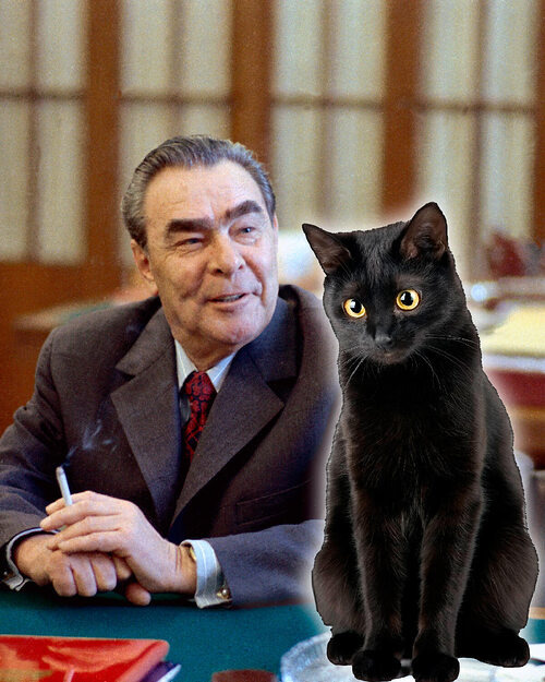 "Нет. Опасности на земле. И от плохих людей. В вашем окружении среди людей, допущенных к власти есть предатели. Но, особенно, берегитесь академиков медицинской академии и врачей"... Далай-лама задумался. А затем сказал: "Леонид Ильич, я хочу преподнести вам необычный подарок" - и затем отошел на минуту. Вернулся он с просторной клеткой, в которой сидел большой черный гладкошерстный кот. Леонид Ильич улыбнулся и протянул руку в клетку - он был большим любителем кошек. Кот тыкнулся носом в руку Брежнева и тот стал гладить кота. Кот звучно замурчал и стал жмурить глаза.