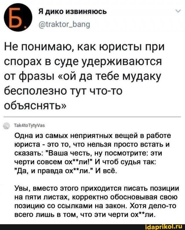 🧹📚 Жительница Омска пришла в суд с осиновым колом РИА Новости делятся историей 50-летняя женщина пришла на судебное заседание не только с документами, но и с осиновым колом. На вопрос приставов, зачем ей этот предмет, она ответила, что это её талисман с защитной силой на случай нападения вампиров. Суд заверил женщину, что никаких упырей здесь нет, но её это не убедило, поэтому она отказалась заходить на заседание без своего оружия. В конце концов осиновый кол всё-таки изъяли, оставив женщину беззащитной перед силами тьмы. И ЧТО ТОЛЬКО НЕ ИСПОЛЬЗУЕШЬ ПРОТИВ ОППОНЕНТА-УПЫРЯ?😂 Что еще приносили в суд? 1. Патрон калибра 9 мм и самодельная рогатка — были обнаружены у граждан, пришедших в суд в Новосибирской области.[1] 2. Набор вилок, туристический топор, нож, спрятанный в сложенном зонте, брючный ремень с пряжкой из двух вложенных ножей, самодельный клинок, встроенный в трость, медицинский скальпель и пусковое устройство «Сигнал охотника» — также были найдены у посетителей судов.[1]