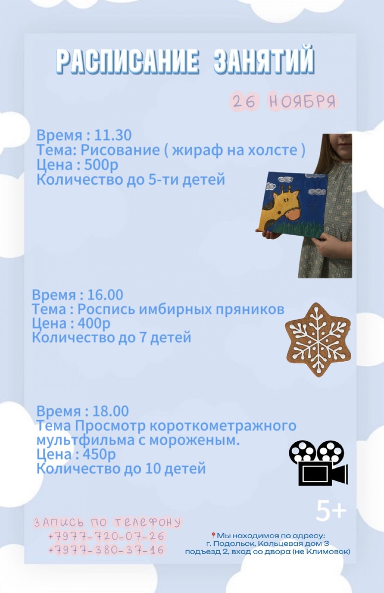 ✨ Пространство «Умный Досуг» Приглашает на занятия детей 5+ 🔊26 и 27 ноября Дружелюбная атмосфера, тактичный подход к каждому ребенку, увлекательные занятия , все это ждет Вас в нашем пространстве 🩷 📲Запись уже открыта 8(977)720-0726 ❗️количество мест ограничено ❗️ Режим работы Пн-пт с 10.00 до 20.00 Сб-Вск с 10.00 до 21.00 🏢 Досуговый детский центр "Умный досуг" 📍 г. Подольск, ул. Кольцевая, 3, под. 2 💰 Цена от 400 ₽ #детямПодольск #интересноПодольск ⭐Поддержать канал голосом 🍰Где поесть в Подольске ✅ Мероприятия Подольск https://dzen.ru/id/66ed500f7b5671493eca3fd6 http://vk.com/podolsk_events http://dzen.ru/podolsk_events
