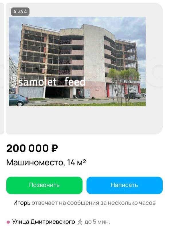 Небольшое сравнение стоимости машино-места в новом строящемся многоуровневом паркинге в нашем ЖК и точно такого же места в точно таком же паркинге на станции метро «Улица Дмитриевского». ________ Присылать новость @mstislavz 👉 Обсудить в чате ЖК 👉 Подписаться на канал